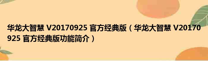 导读 大家好,关于华龙大智慧 V20170925 官方经典版,华龙大智慧 V20170925 官方经典版功能简介这个很多人还不知道,小勒来为大家解答以上的问