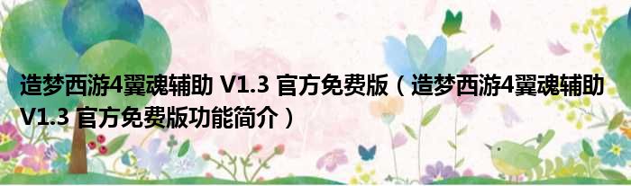 造梦西游4翼魂辅助 V1.3 官方免费版(造梦西游4翼魂辅助 V1.3 官方免费版功能简介)