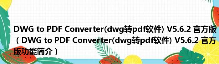 DWG to PDF Converter(dwg转pdf软件) V5.6.2 官方版(DWG to PDF Converter(dwg转pdf软件) V5.6.2 官方版功能简介)