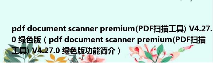pdf document scanner premium(PDF扫描工具) V4.27.0 绿色版(pdf document scanner premium(PDF扫描工具) V4.27.0 绿色版功能简介)