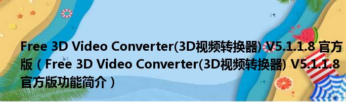 大家好,关于Free 3D Video Converter(3D视频转换器) V5.1.1.8 官方版,Free 3D Video Converter(3D视频转换器) V5.1.1.8 官方版功能简介这个很多人还不知道,小勒来为大家解答以上的问题,现在让我们一起来看看吧!