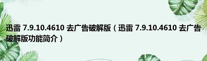 导读 大家好,关于迅雷 7 9 10 4610 去广告破解版,迅雷 7 9 10 4610 去广告破解版功能简介这个很多人还不知道,小勒来为大家解答以上的问题,