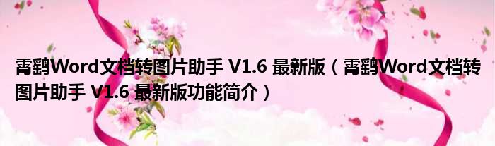 霄鹞Word文档转图片助手 V1.6 最新版(霄鹞Word文档转图片助手 V1.6 最新版功能简介)