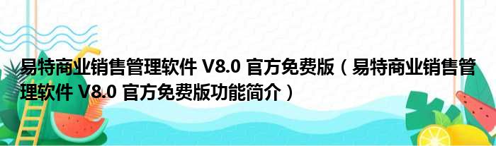 易特商业销售管理软件 V8.0 官方免费版(易特商业销售管理软件 V8.0 官方免费版功能简介)