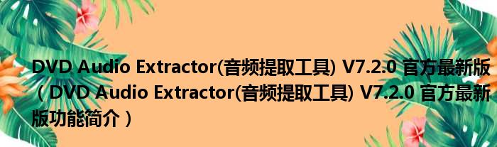 DVD Audio Extractor(音频提取工具) V7.2.0 官方最新版(DVD Audio Extractor(音频提取工具) V7.2.0 官方最新版功能简介)