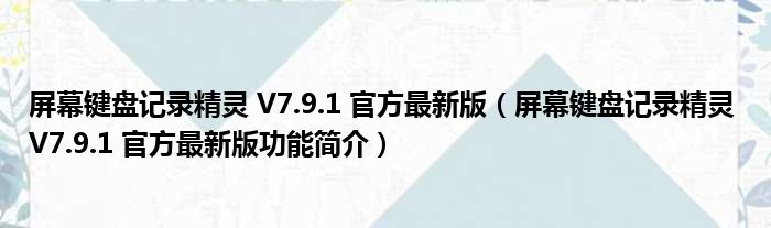导读 大家好,关于屏幕键盘记录精灵 V7 9 1 官方最新版,屏幕键盘记录精灵 V7 9 1 官方最新版功能简介这个很多人还不知道,小勒来为大家解答以