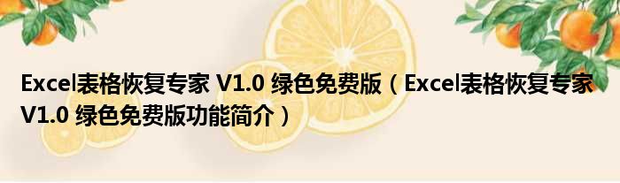 Excel表格恢复专家 V1.0 绿色免费版(Excel表格恢复专家 V1.0 绿色免费版功能简介)
