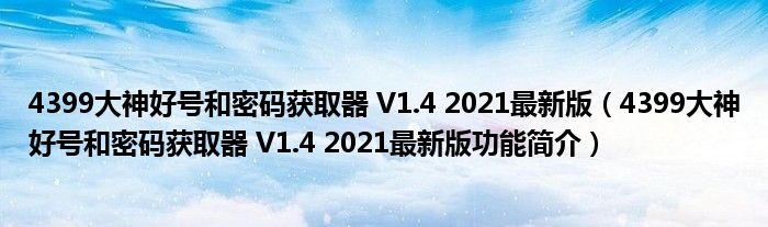 4399大神好号和密码获取器 V1.4 2021最新版(4399大神好号和密码获取器 V1.4 2021最新版功能简介)