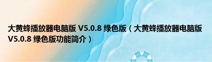 大黄蜂播放器电脑版 V5.0.8 绿色版(大黄蜂播放器电脑版 V5.0.8 绿色版功能简介)