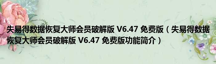 失易得数据恢复大师会员破解版 V6.47 免费版(失易得数据恢复大师会员破解版 V6.47 免费版功能简介)