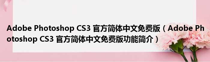 Adobe Photoshop CS3 官方简体中文免费版(Adobe Photoshop CS3 官方简体中文免费版功能简介)