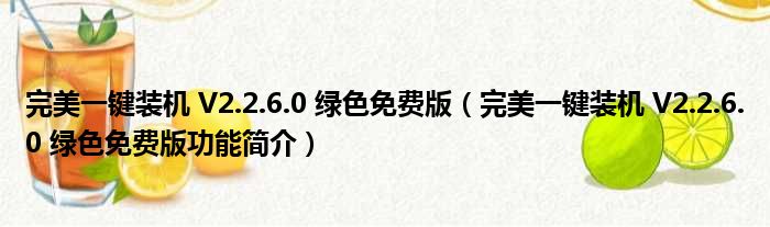 完美一键装机 V2.2.6.0 绿色免费版(完美一键装机 V2.2.6.0 绿色免费版功能简介)