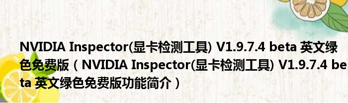 NVIDIA Inspector(显卡检测工具) V1.9.7.4 beta 英文绿色免费版(NVIDIA Inspector(显卡检测工具) V1.9.7.4 beta 英文绿色免费版功能简介)