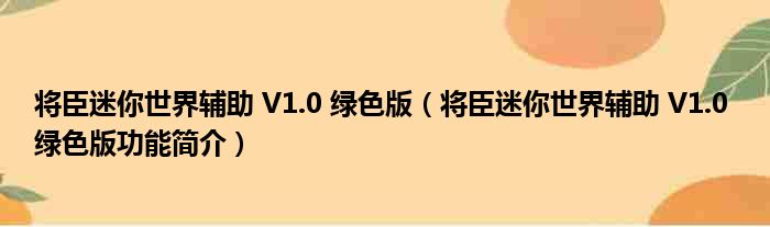 将臣迷你世界辅助 V1.0 绿色版(将臣迷你世界辅助 V1.0 绿色版功能简介)