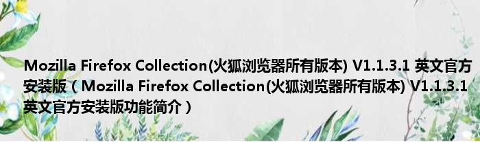 Mozilla Firefox Collection(火狐浏览器所有版本) V1.1.3.1 英文官方安装版(Mozilla Firefox Collection(火狐浏览器所有版本) V1.1.3.1 英文官方安装版功能简介)