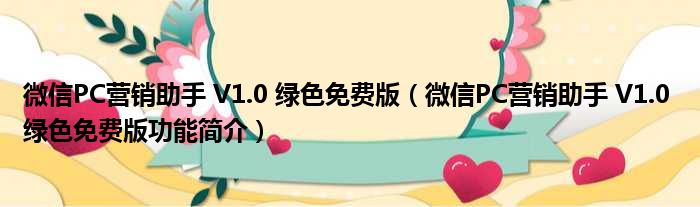 微信PC营销助手 V1.0 绿色免费版(微信PC营销助手 V1.0 绿色免费版功能简介)