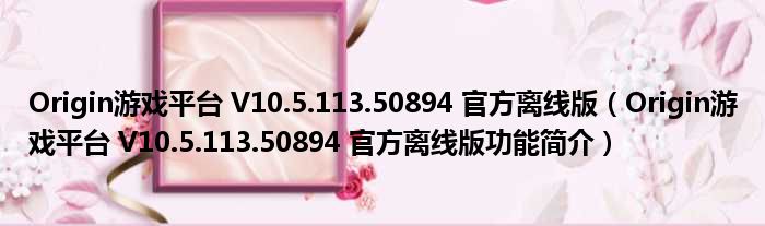 Origin游戏平台 V10.5.113.50894 官方离线版(Origin游戏平台 V10.5.113.50894 官方离线版功能简介)