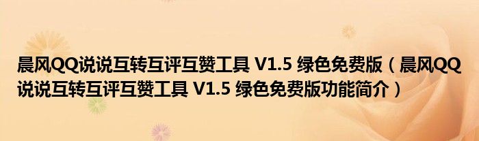 导读 大家好,关于晨风QQ说说互转互评互赞工具 V1 5 绿色免费版,晨风QQ说说互转互评互赞工具 V1 5 绿色免费版功能简介这个很多人还不知道,小