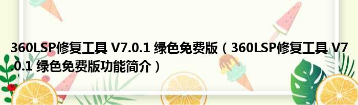360LSP修复工具 V7.0.1 绿色免费版(360LSP修复工具 V7.0.1 绿色免费版功能简介)