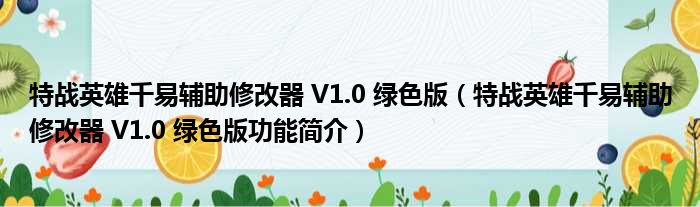 特战英雄千易辅助修改器 V1.0 绿色版(特战英雄千易辅助修改器 V1.0 绿色版功能简介)