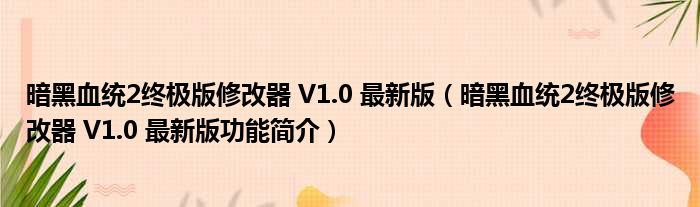 导读 大家好,关于暗黑血统2终极版修改器 V1 0 最新版,暗黑血统2终极版修改器 V1 0 最新版功能简介这个很多人还不知道,小勒来为大家解答以上