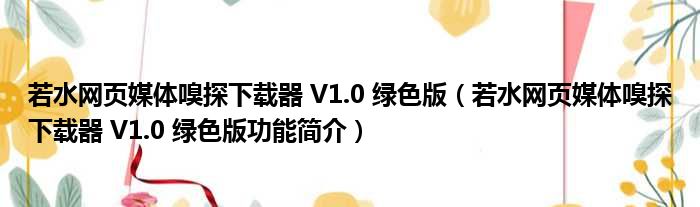 导读 大家好,关于若水网页媒体嗅探下载器 V1 0 绿色版,若水网页媒体嗅探下载器 V1 0 绿色版功能简介这个很多人还不知道,小勒来为大家解答以