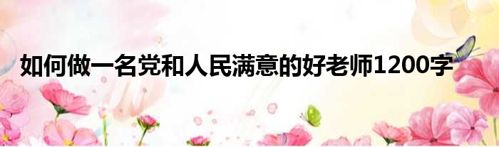 大家好,今天小六子来为大家解答以下的问题,关于如何做一名党和人民满意的好老师1200字这个很多人还不知道,现在让我们一起来看看吧!