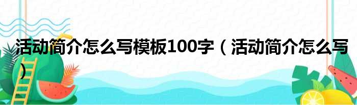 导读 大家好,今天小六子来为大家解答以下的问题,关于活动简介怎么写模板100字,活动简介怎么写这个很多人还不知道,现在让我们一起来看看吧!1