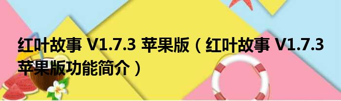 导读 大家好,关于红叶故事 V1 7 3 苹果版,红叶故事 V1 7 3 苹果版功能简介这个很多人还不知道,小勒来为大家解答以上的问题,现在让我们一起