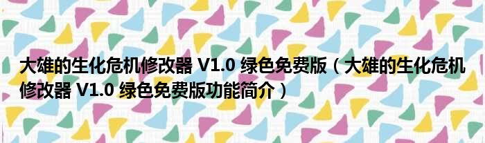 大雄的生化危机修改器 V1.0 绿色免费版(大雄的生化危机修改器 V1.0 绿色免费版功能简介)