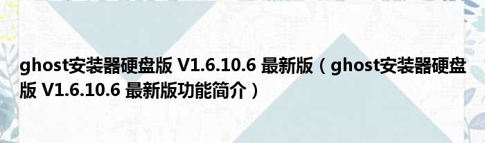 ghost安装器硬盘版 V1.6.10.6 最新版(ghost安装器硬盘版 V1.6.10.6 最新版功能简介)