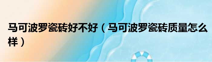 马可波罗瓷砖好不好(马可波罗瓷砖质量怎么样)