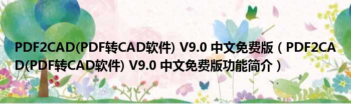PDF2CAD(PDF转CAD软件) V9.0 中文免费版(PDF2CAD(PDF转CAD软件) V9.0 中文免费版功能简介)
