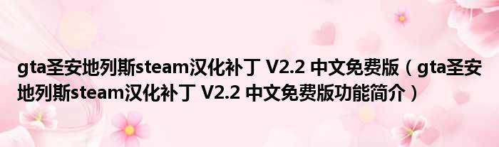gta圣安地列斯steam汉化补丁 V2.2 中文免费版(gta圣安地列斯steam汉化补丁 V2.2 中文免费版功能简介)