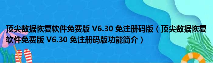 顶尖数据恢复软件免费版 V6.30 免注册码版(顶尖数据恢复软件免费版 V6.30 免注册码版功能简介)