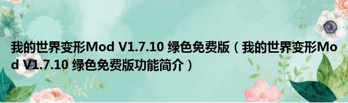 导读 大家好,关于我的世界变形Mod V1 7 10 绿色免费版,我的世界变形Mod V1 7 10 绿色免费版功能简介这个很多人还不知道,小勒来为大家解答以