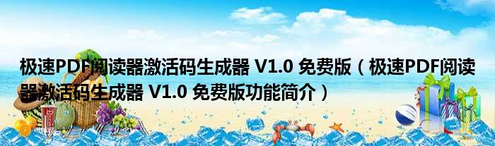 极速PDF阅读器激活码生成器 V1.0 免费版(极速PDF阅读器激活码生成器 V1.0 免费版功能简介)