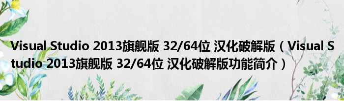 Visual Studio 2013旗舰版 32/64位 汉化破解版(Visual Studio 2013旗舰版 32/64位 汉化破解版功能简介)