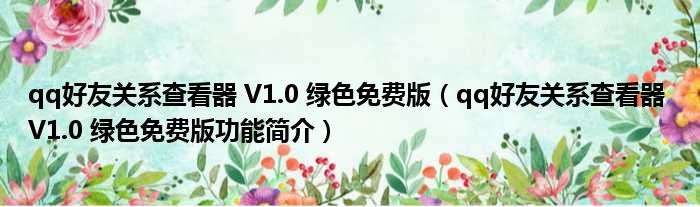 导读 大家好,关于qq好友关系查看器 V1 0 绿色免费版,qq好友关系查看器 V1 0 绿色免费版功能简介这个很多人还不知道,小勒来为大家解答以上的