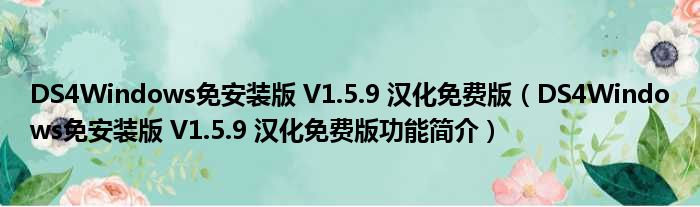 DS4Windows免安装版 V1.5.9 汉化免费版(DS4Windows免安装版 V1.5.9 汉化免费版功能简介)