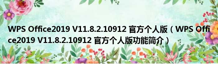 WPS Office2019 V11.8.2.10912 官方个人版(WPS Office2019 V11.8.2.10912 官方个人版功能简介)
