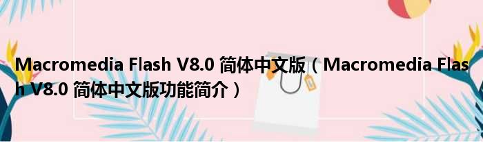 Macromedia Flash V8.0 简体中文版(Macromedia Flash V8.0 简体中文版功能简介)