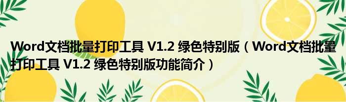 Word文档批量打印工具 V1.2 绿色特别版(Word文档批量打印工具 V1.2 绿色特别版功能简介)