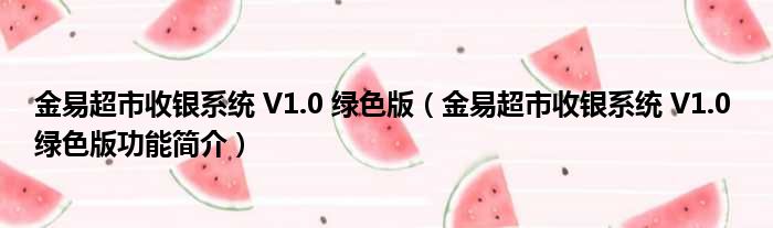 金易超市收银系统 V1.0 绿色版(金易超市收银系统 V1.0 绿色版功能简介)