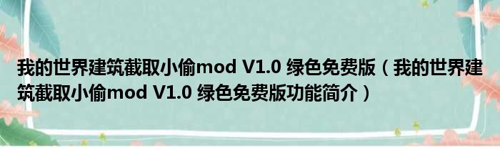我的世界建筑截取小偷mod V1.0 绿色免费版(我的世界建筑截取小偷mod V1.0 绿色免费版功能简介)