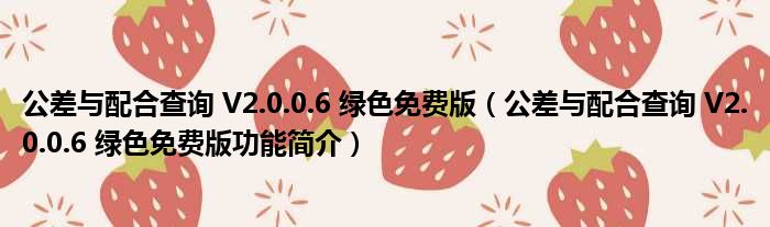 公差与配合查询 V2.0.0.6 绿色免费版(公差与配合查询 V2.0.0.6 绿色免费版功能简介)