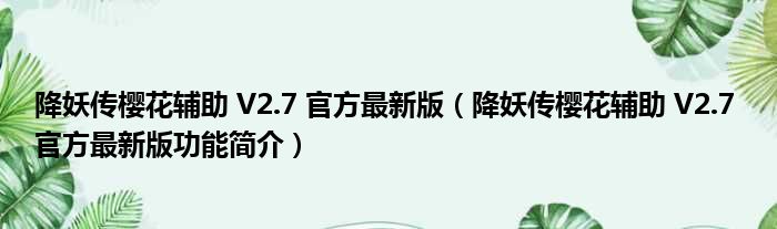 降妖传樱花辅助 V2.7 官方最新版(降妖传樱花辅助 V2.7 官方最新版功能简介)