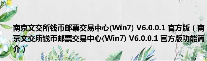 南京文交所钱币邮票交易中心(Win7) V6.0.0.1 官方版(南京文交所钱币邮票交易中心(Win7) V6.0.0.1 官方版功能简介)
