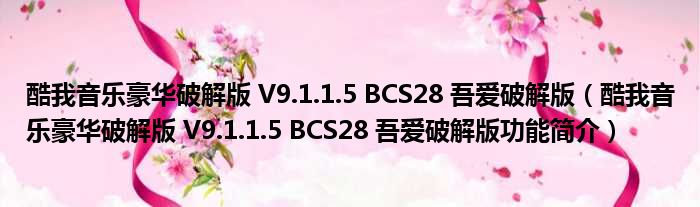 酷我音乐豪华破解版 V9.1.1.5 BCS28 吾爱破解版(酷我音乐豪华破解版 V9.1.1.5 BCS28 吾爱破解版功能简介)