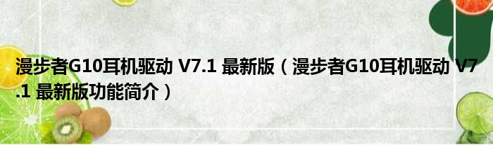 漫步者G10耳机驱动 V7.1 最新版(漫步者G10耳机驱动 V7.1 最新版功能简介)